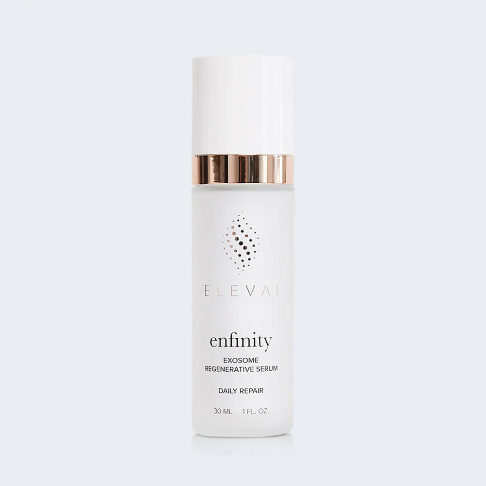 Elevai Enfinity™ is a daily serum powered by 15+ years of stem cell and exosome research and over 1,000 clinical studies. Developed by medical professionals, it delivers professional-grade results at home and enhances in-clinic treatments. With scientifically proven Cell Zero Exosomes™ sourced from human umbilical cord stem cells—Elevai Enfinity™ helps visibly renew, strengthen, and restore skin vitality.