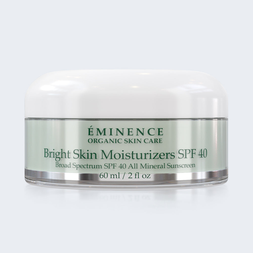 The Eminence Bright Skin Moisturizer SPF 40 protects and brightens your skin with its stone crop, bearberry, GigaWhite™, and Natural Hydroquinone Alternative. Lighten the appearance of dark spots while protecting against future damage with the built-in broad-spectrum SPF.