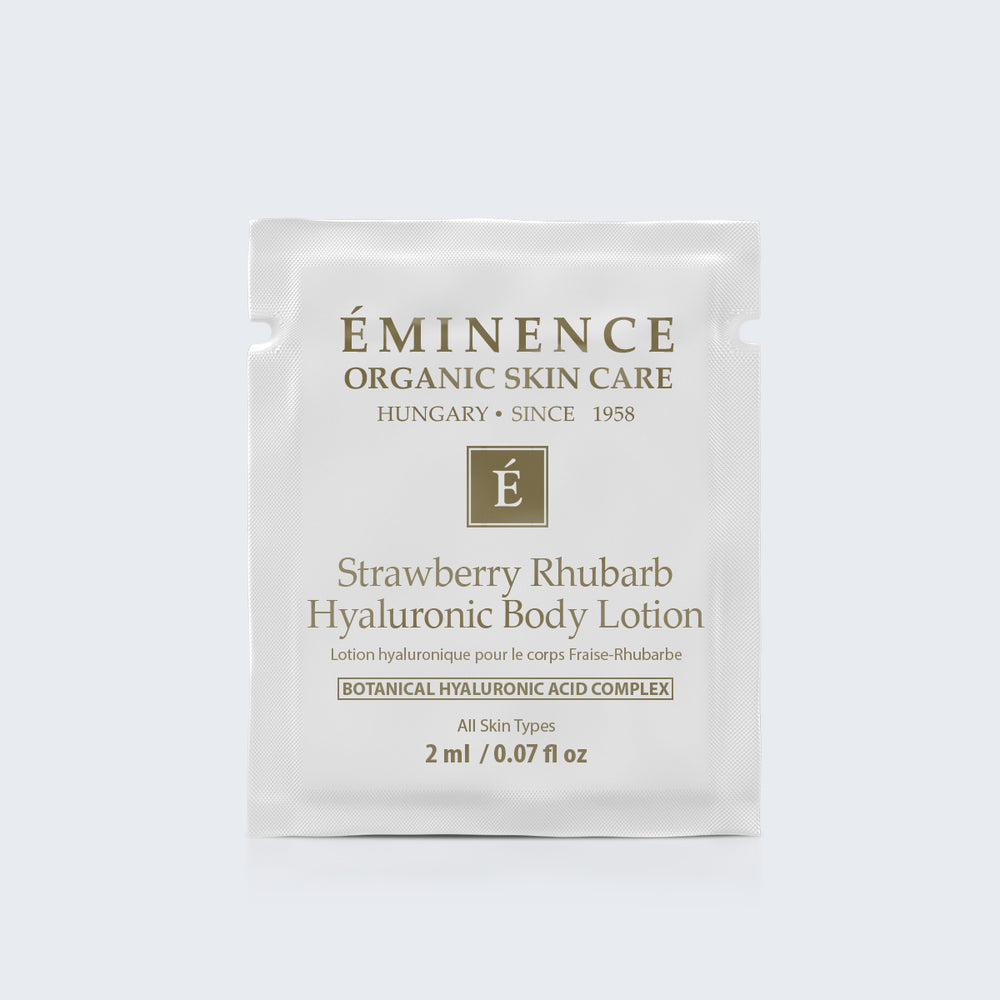 Eminence Organics Strawberry Rhubarb Hyaluronic Body Lotion Card Sample