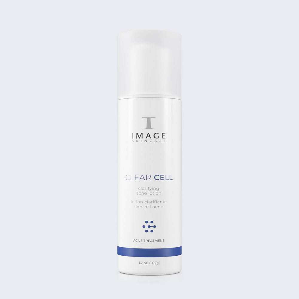IMAGE | CLEAR CELL Clarifying Acne Lotion is a targeted daily treatment that penetrates pores to clear most acne blemishes. It treats existing acne blemishes while preventing future acne blemishes, blackheads, and whiteheads from forming. The lightweight, non-comedogenic formula blends seamlessly into the skin for use under makeup.