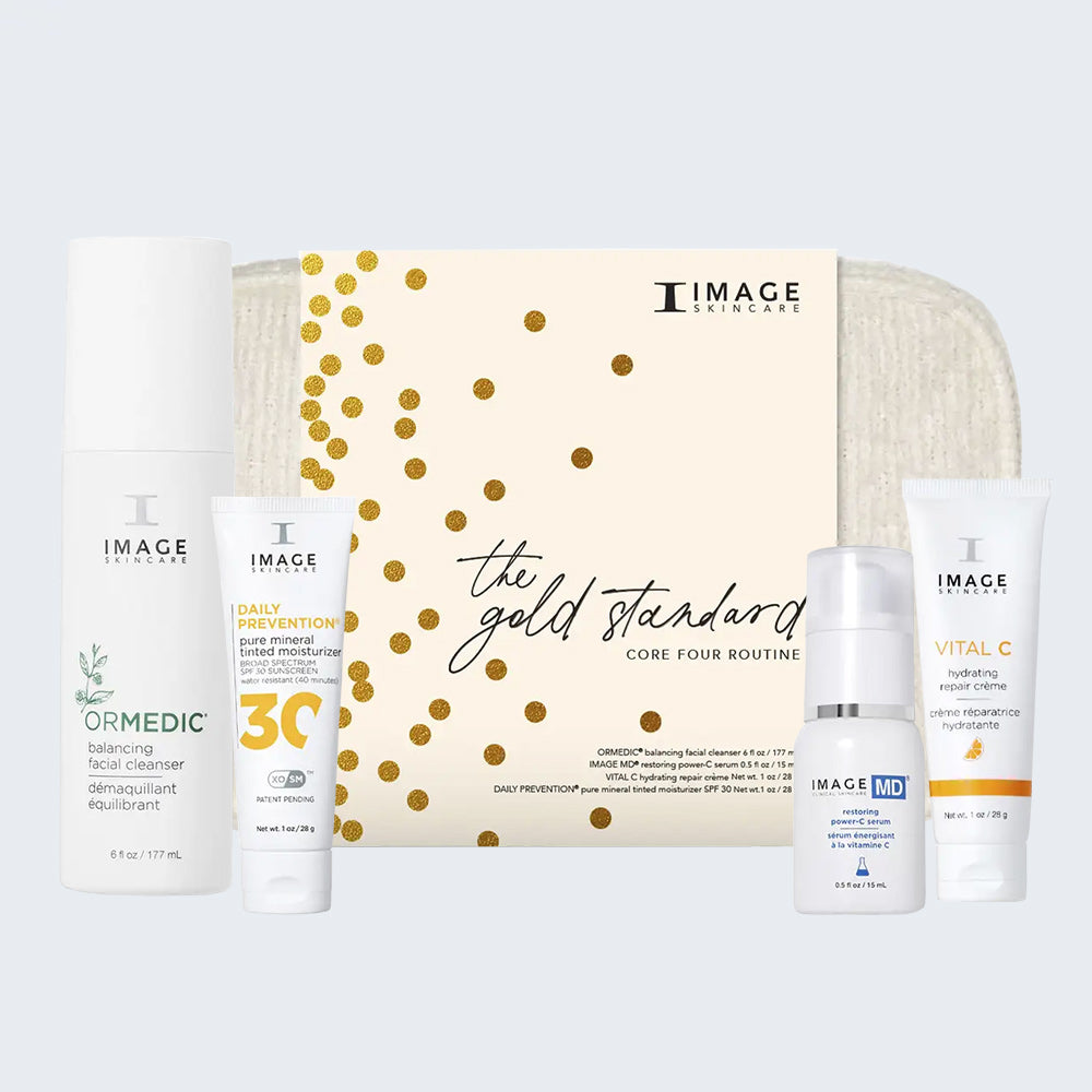 Experience the Gold Standard Core Four regimen of IMAGE clinically-proven formulations. Quench thirsty skin with this professionally curated set that includes a complete AM/PM regimen. Featuring the new and improved IMAGE MD® restoring power-C serum. The ultimate grand gesture for skincare-obsessed.