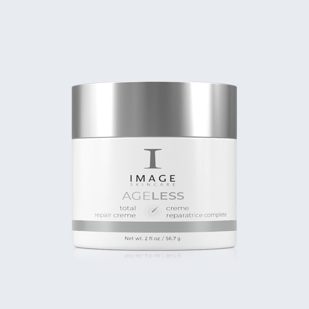 IMAGE Skincare AGELESS Total Repair Creme is a rich nighttime repair crème that combats the appearance of multiple signs of aging. A dual resurfacing system featuring glycolic acid and time-released encapsulated retinol help fight the appearance of wrinkles and uneven skin texture and tone. Nourishing shea butter softens and moisturizes dry skin.