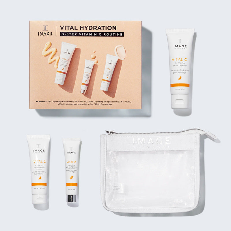 Discover bestsellers from our award-winning collection that has reached icon status with two products sold every minute. This powerful skincare routine hydrates, nourishes and brightens skin with multiple forms of vitamin C, antioxidants and hyaluronic acid. All formulas feature a light citrus scent that leaves the skin feeling refreshed and energized. The travel-friendly sizes come in a transparent cosmetic bag for healthy, glowing skin at home or away.