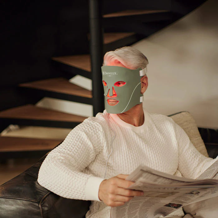 The only LED mask built for men - Omnilux Men. Nature gave us all unique skin types, and now, Omnilux gives us a tailored solution. This advanced LED light therapy level technology is calibrated with a deeper penetrating wavelength of near-infrared light tailored to fit the specific needs of men's skin. On average, men's skin is 25% thicker than women's and needs its own specialized treatment. Don't let razor burns, dryness, or fine lines bring your confidence down a notch. Let Omnilux Men give you real results you can see- and feel!