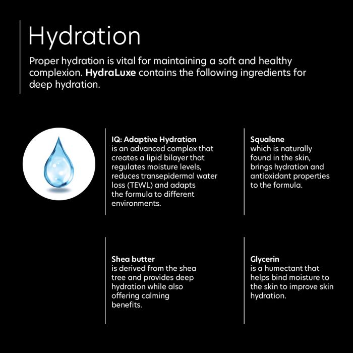 IQ: Adaptive Hydration - an advanced complex that regulates moisture levels in the skin, reduces water loss and adapts the formula to different environments.