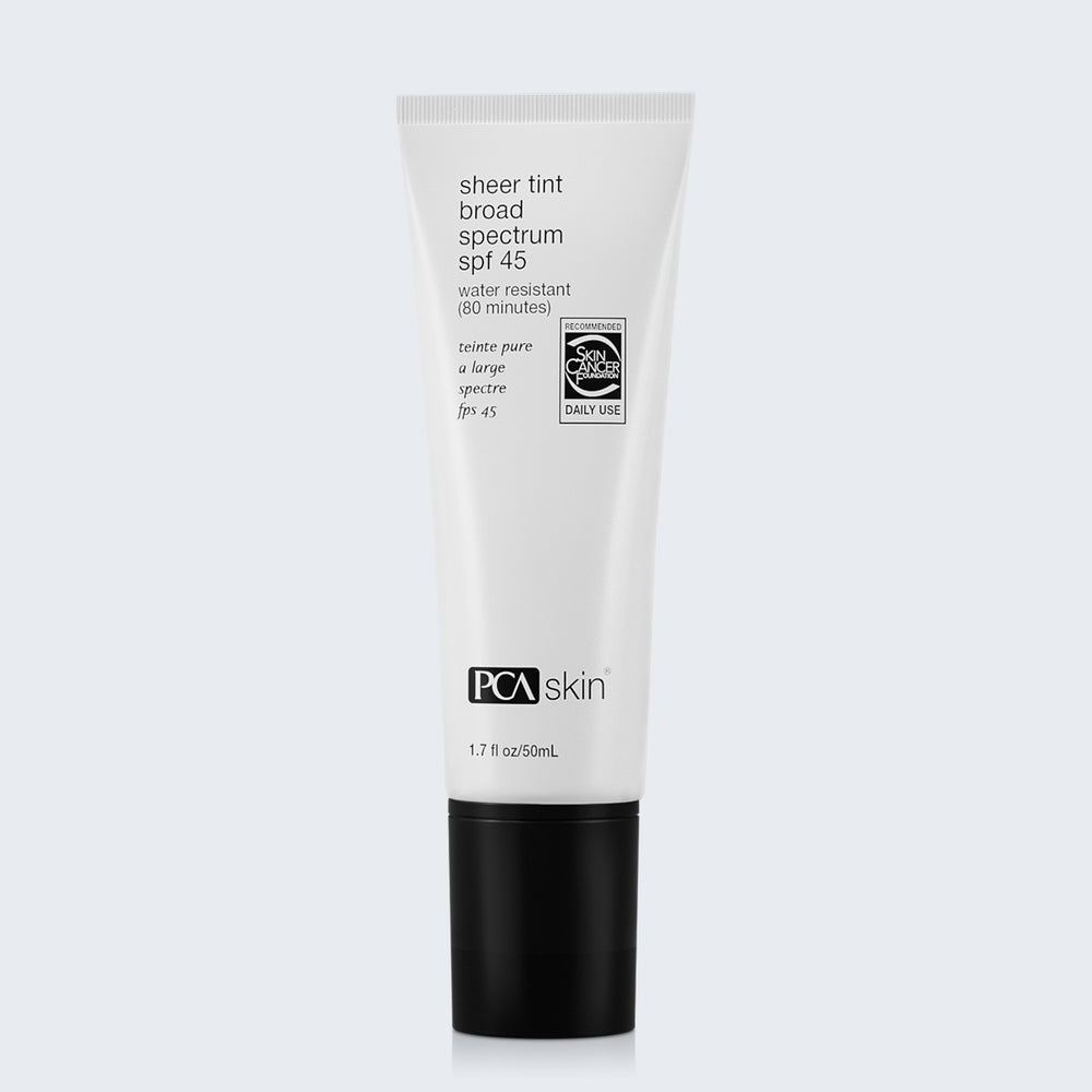 Protect your skin while blurring imperfections with PCA Skin's Sheer Tint Broad Spectrum SPF 45. This universally-tinted and best-selling broad-spectrum SPF is formulated with a water-resistant formula that ensures your skin stays protected against premature aging. It's also fortified with a blend of antioxidants to provide an extra layer of defense against free radicals and pollutants. The light tint was designed to complement all skin tones, and it effectively blurs away any imperfections for a flawless finish.