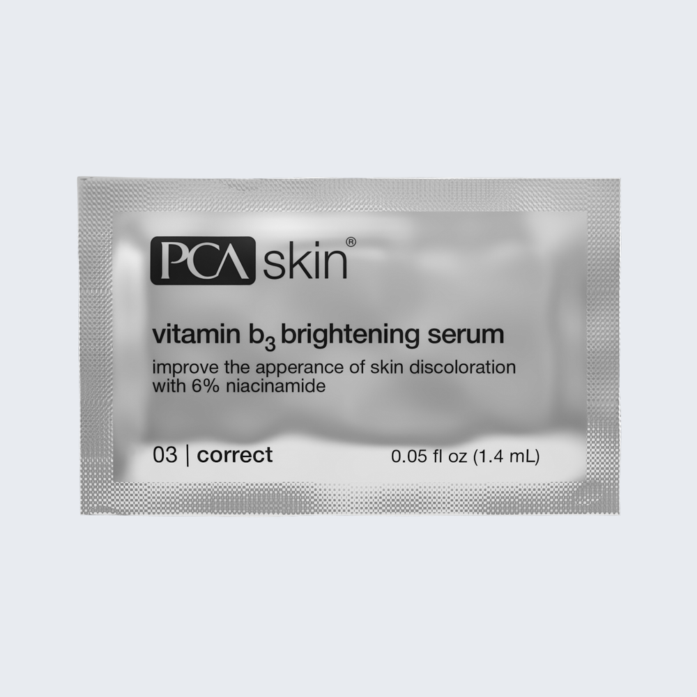 PCA Vitamin B3 Brightening Serum diminishes dark spots and encourages an even skin tone. The serum uses a gentle blend of ingredients, including niacinamide (vitamin B3), to penetrate the skin and improve complexion over time.