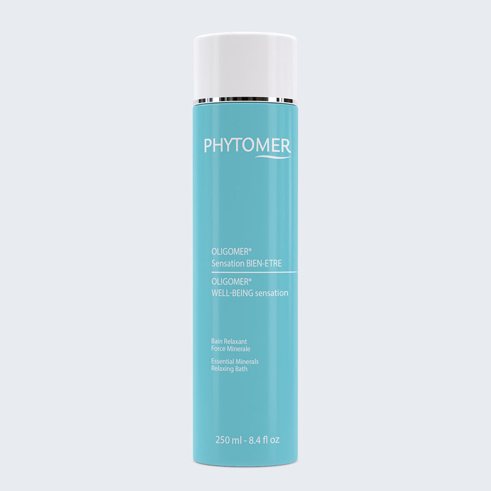 The Phytomer Oligomer Well-Being Sensation Essential Minerals Relaxing Bath relaxes the body with its fragrant, foaming capabilities, nourishing the skin with essential trace elements that release tension and smooth the skin. After each use, your body appears cleansed and calm – perfect after a long day!