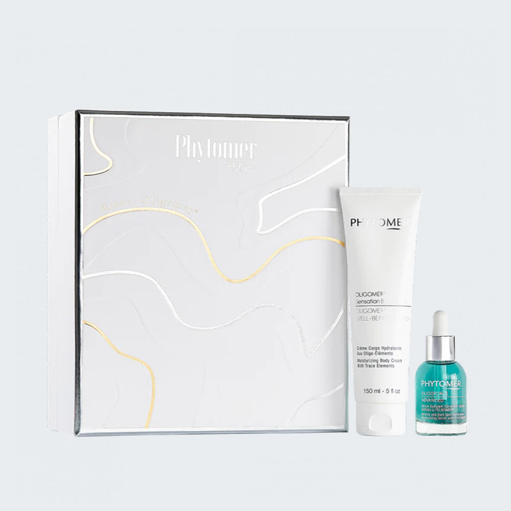 This limited-time offer includes a FREE OLIGOMER® WELL-BEING Body Cream with the purchase of the OLIGOFORCE ADVANCED Serum. Both products are designed to help improve skin health.