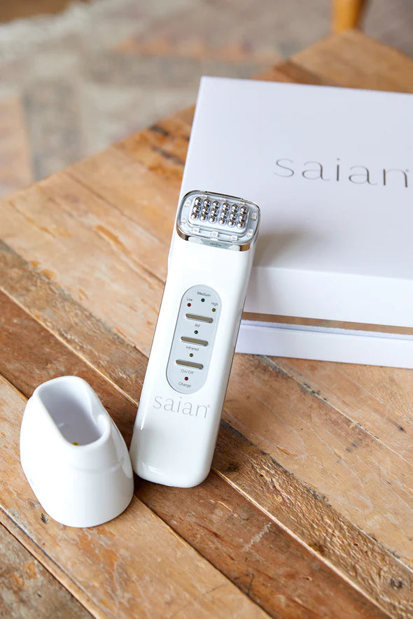 Unleash the youthfulness in your skin with Saian FirmAge! This revolutionary, portable hand-held RF and Infrared machine helps you reverse signs of aging right in your own home. Its 3 intensity settings – low, medium, and high – give you flexibility as you use it to craft the perfect non-surgical facial treatment.